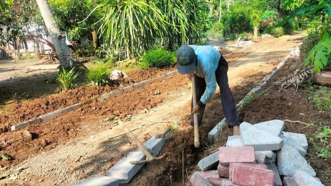 Warga Kandangan Gotong Royong Paving Jalan