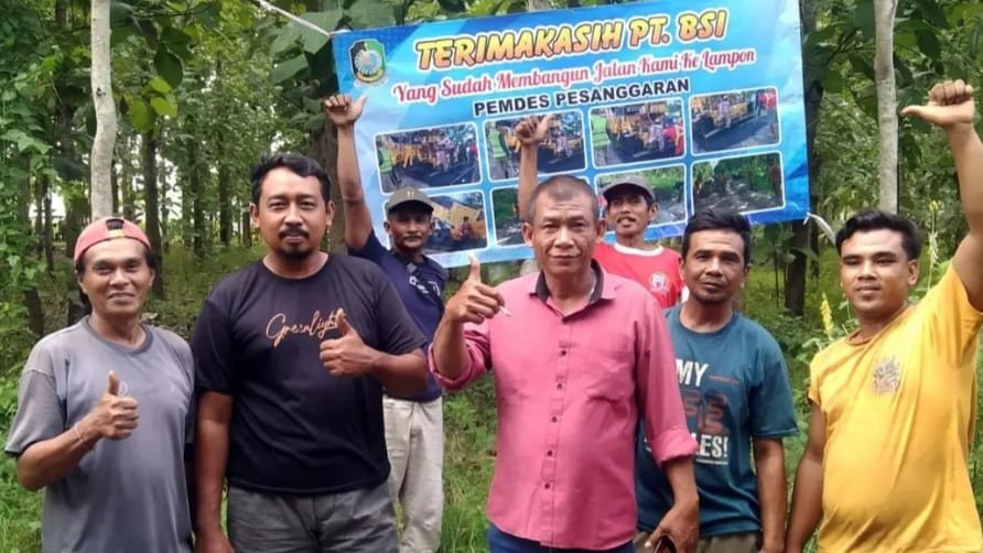 Warga Bentangkan Spanduk Terima Kasih PT BSI untuk Proyek Jalan Lampon