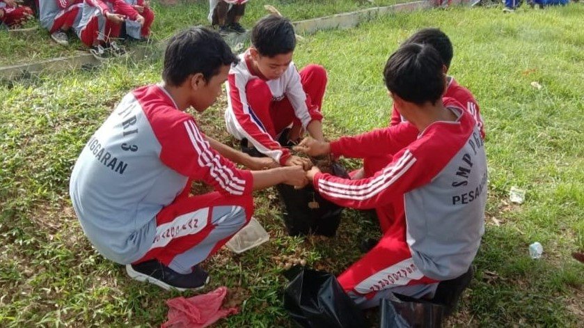 Siswa di Pesanggaran Menanam Tanaman Obat di Lingkungan Sekolah
